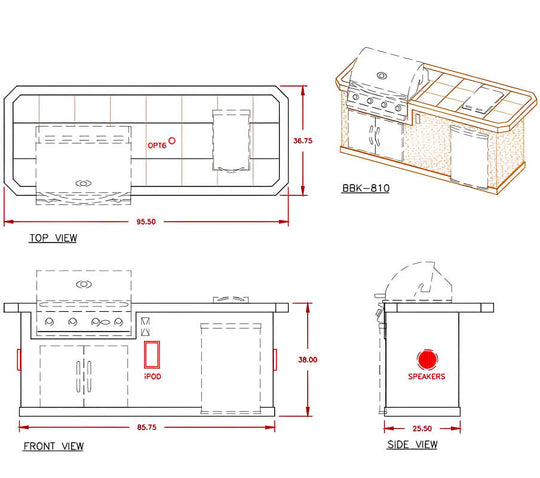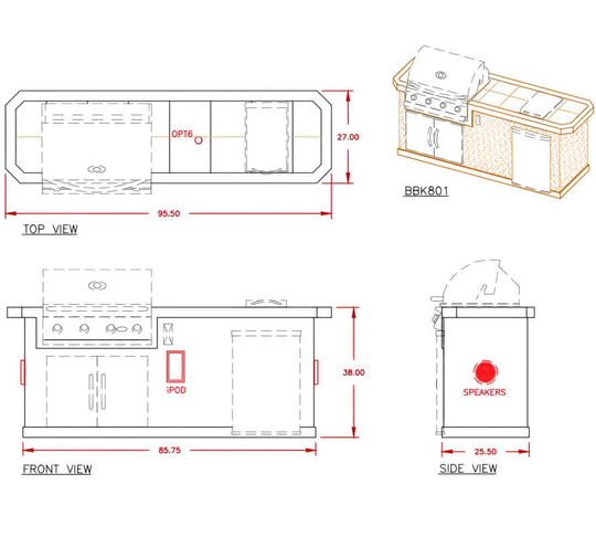 Cal Flame Bel Air Q Escape Series BBQ Grill Island - BBK810
